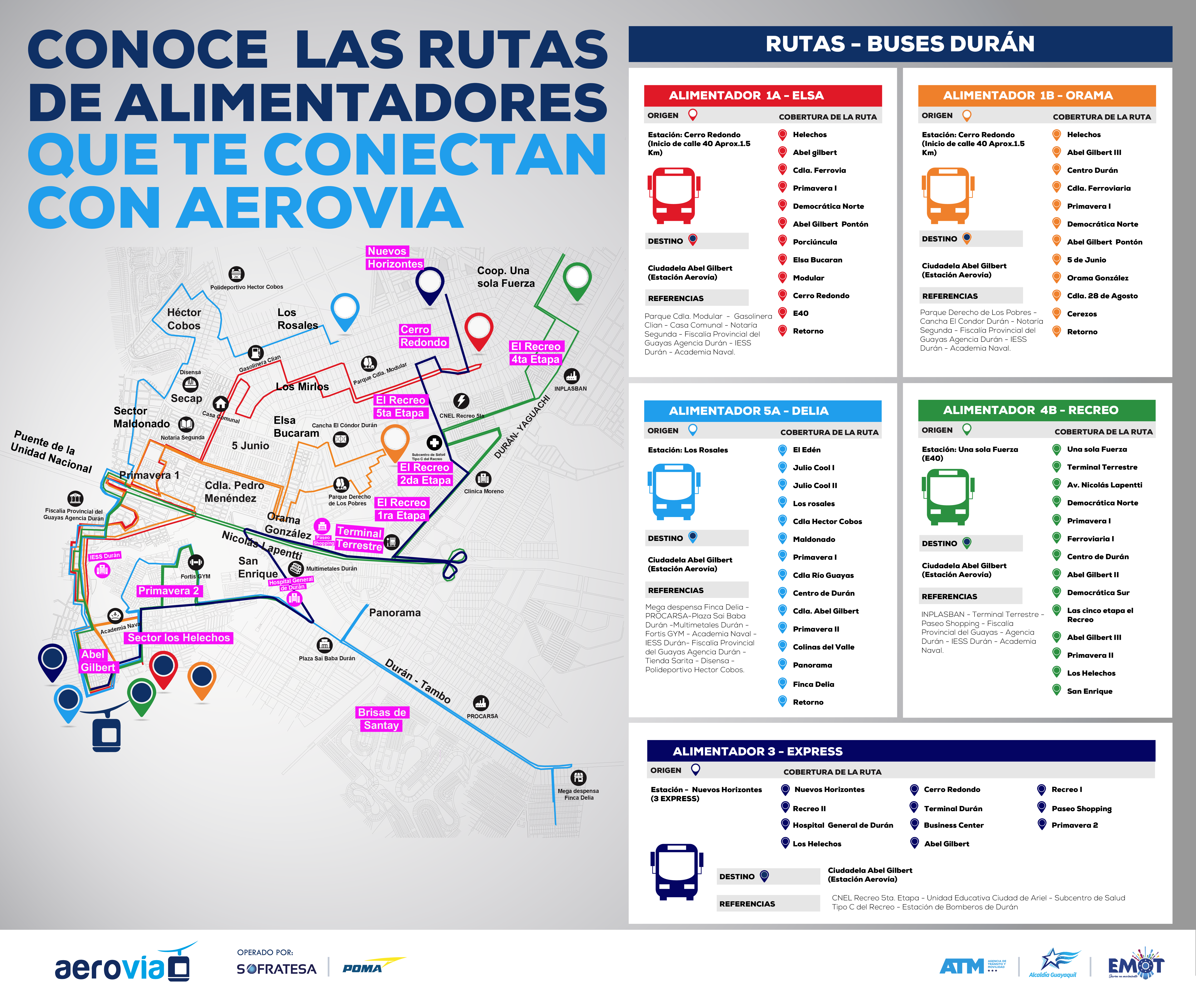 pone a su conocimiento el mapa con las rutas de los buses en Durán: